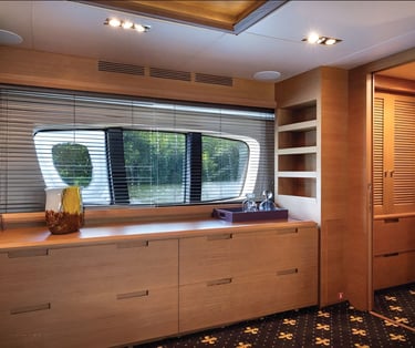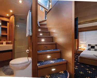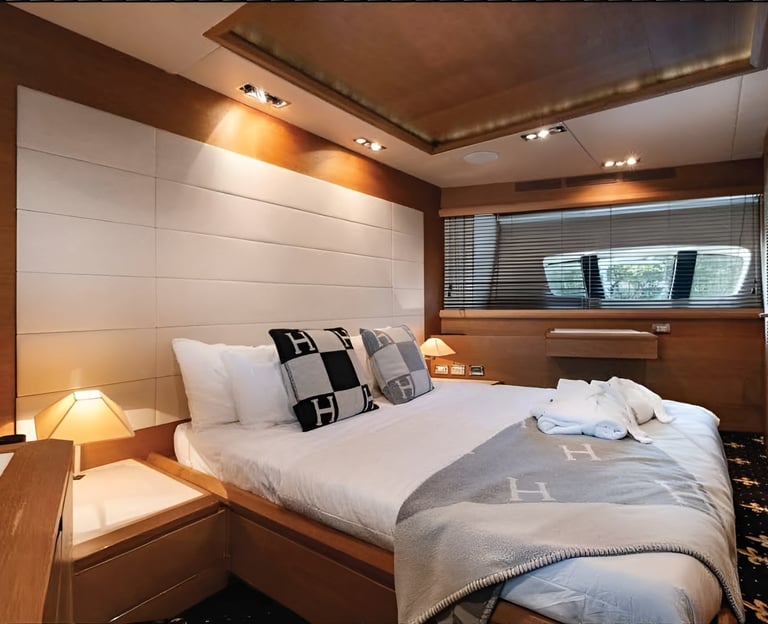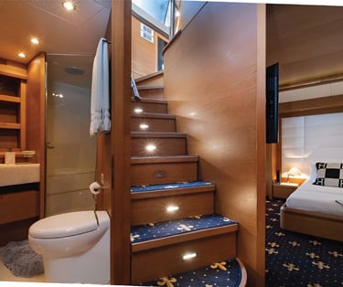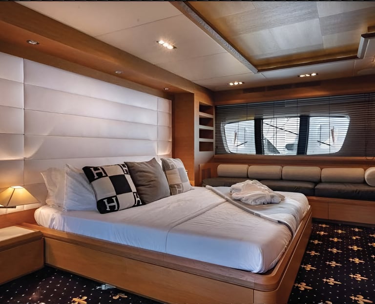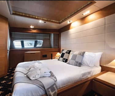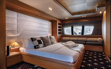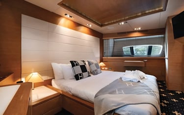 The Master Suite offers luxurious surroundings, ensuring a serene experience with elegant decor and spacious layout for complete comfort during your stay aboard Intervention.