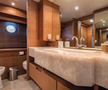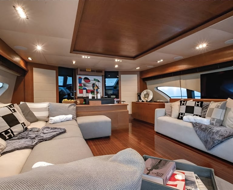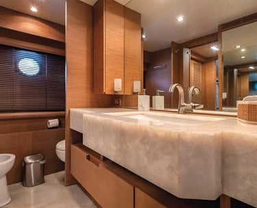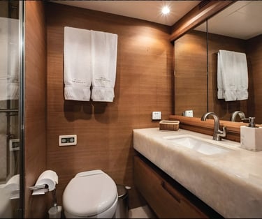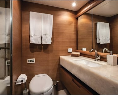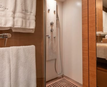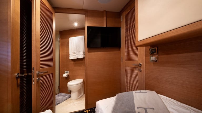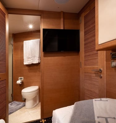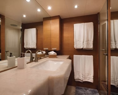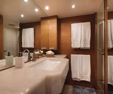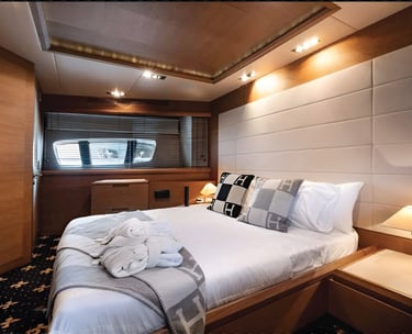The VIP Suite provides a refined atmosphere with exquisite furnishings, ideal for relaxing and enjoying beautiful views while prioritizing comfort and privacy during your yacht adventure.