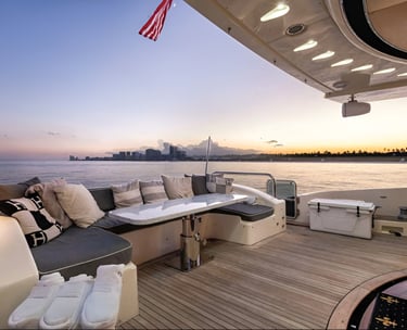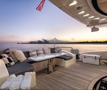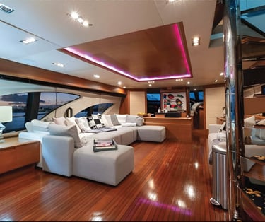 Step aboard a 101-foot luxury FPC yacht where opulence meets comfort, designed to host up to 20 guests in unparalleled style. Every corner of this magnificent vessel is a testament to sophistication, featuring spacious lounges adorned with plush furnishings and panoramic windows that offer breathtaking views of the open sea. Guests can indulge in culinary delights prepared by a five-star chef, ensuring that every meal is a memorable feast crafted from the finest ingredients. The dedicated five-star crew provides impeccable service, attending to every need with grace and efficiency, allowing guests to relax and immerse themselves in the lavish surroundings.